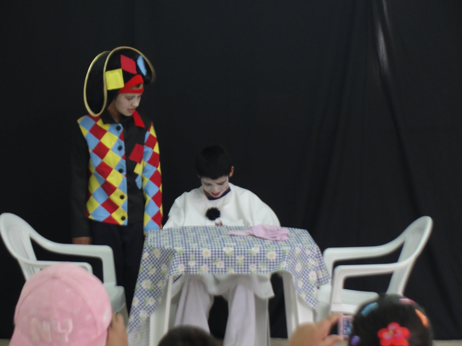 No sábado passado a galerinha da oficina de teatro do Assentamento Colônia Miranda apresentaram a peça Era Só o Que Faltava. O texto, baseado na Commedia Dell'Arte foi escrito pelos próprios alunos durante a oficina. No mesmo dia foi apresentado uma esquete curta baseada no trabalho de Charles Chaplin montada e escrita também pelos alunos da oficina. Como é comum em oficinas de teatro, a rotatividade dos alunos interrompeu um processo de montagem que estava em andamento, fazendo com que tivéssemos que montar as pressas essas duas cenas curtas, então nos aproveitamos da pesquisa realizada para a montagem do espetáculo Lúcia, para orientar os alunos na pesquisa e produção dessa esquete. A pressão foi grande, mas o resultado valeu a pena!