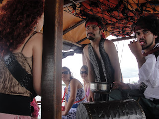 A Cia Teatral Nós em Cena encontra-se em Guaratuba, cidade do litoral paranaense, realizando performances cênicas a bordo do Barco Pirata. Numa parceria com Carlos Grando (Comandante Barbosa) e Vera Grando (Pirata Fofuxita), os atores da cia Fábio Beckert, Deisi Corrêa e Gustavo Iglesias interpretam Edgar Bozo, o mais barato conquistador dos sete mares, Valentina, a poderosa imediata do comandante e Capitão Bartolomeu, o sedento por ouro, e aprontam as maiores durante o passeio de 1h00 pela Baía de Guaratuba. Vale a pena conferir a bagunça dessa turma!!!!